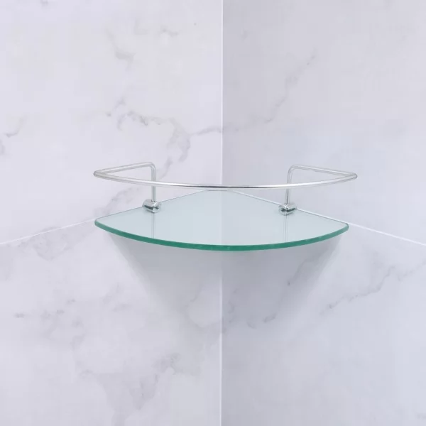 Porta Shampoo De Canto Cromado Com Base De Vidro